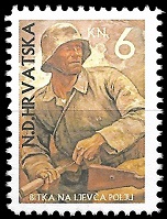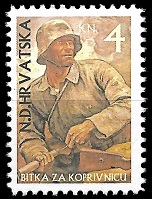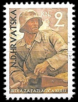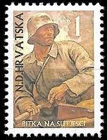 The Volksdeutsche from the Independent State of Croatia issued overprints on German stamps of the “Day of Wehrmacht” in 1943 and 1944, which was given to the new members of the division "Prinz Eugen".