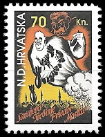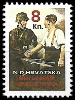 The members of the association used these donation stamps to collect money for Croatian emigrants, because in emigration they foresaw the events of the Homeland War and the occupation of the rest of AVNOJ Croatia by the Jugo-Communists, local traitors and serbian Chetniks monsters, and therefore continued to issue sets of postage stamps of the Independent State of Croatia in cooperation with Višnja Pavelić, daughter of Poglavnik Dr. Ante Pavelić until 1994.