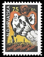 The same situation with the stamps of the Italian occupation of the island of Ugljan, the partisan stamps for the island of Lastovo, a stamp-set issued on the occasion of the accession of Sandžak to the Independent State of Croatia on April 29, 1941., Stamps of the German Wehrmacht with the name "Inselpost" printed in Zagreb and Vukovar, Stamps of the German minority in the Independent State of Croatia, stamps for recruiting in the SS division "Prince Eugen", etc.