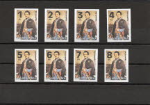 Limited to 500 non-perforated sets with 8 stamps of 1 Kuna, 2 Kuna, 3 Kuna, 4 Kuna, 5 Kuna, 6 Kuna, 7 Kuna and 8 Kuna.
