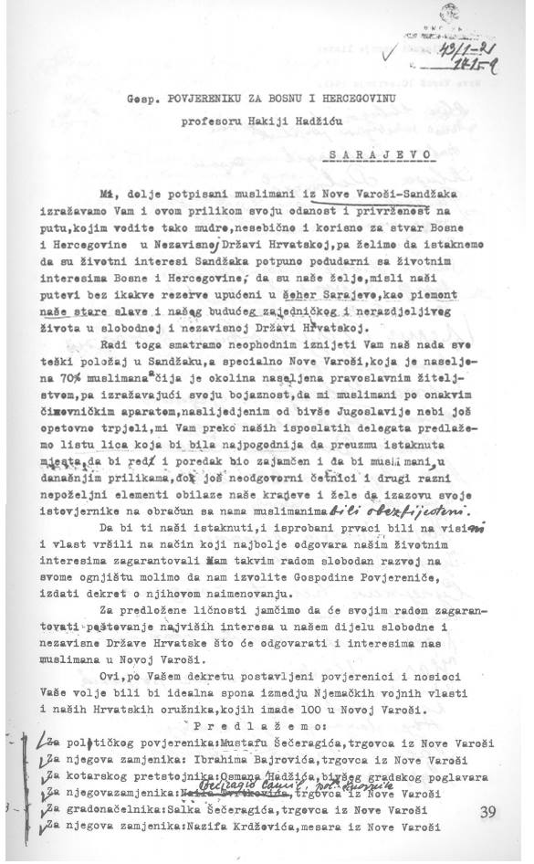 Preserved letter from representatives of Sandžak to join the Independent State of Croatia :