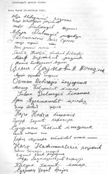 On the same day, a large group of Croatian Muslims from Nova Varoš demanded from Hakija Hadžić (Ustasha trustee for Bosnia) to establish a Croatian administration in that city, which at that time had 70% Croatian-Muslim inhabitants, but which was surrounded by Serbian villages whose inhabitants were inclined to bloodthirsty and the infamous Chetniks.